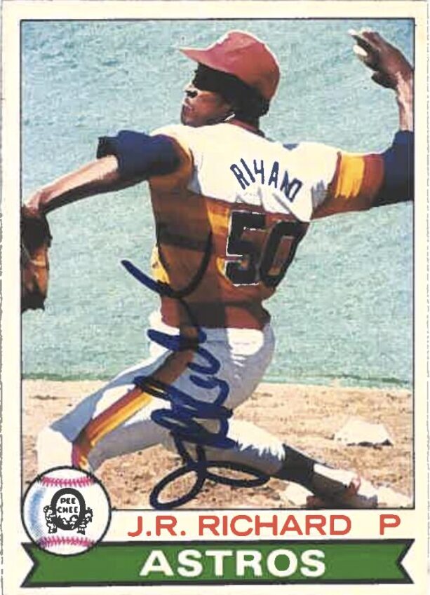 Shown here is an autographed Topps card of J.R. Richard from 1979.