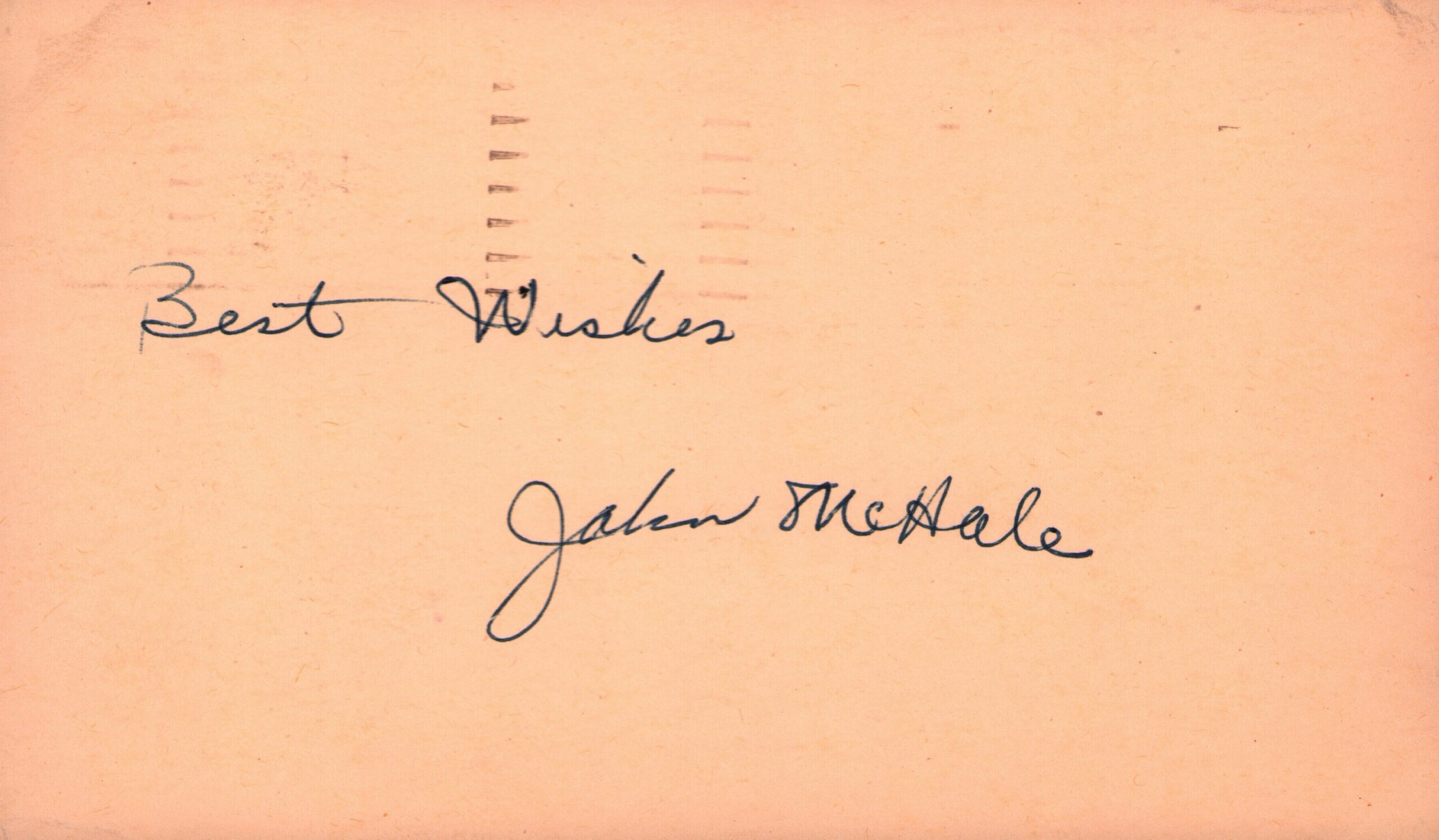 Shown here is an autographed photo of McHale with the Buffalo Bisons from 1945 or ’46. McHale devoted his entire adult life to the game.
