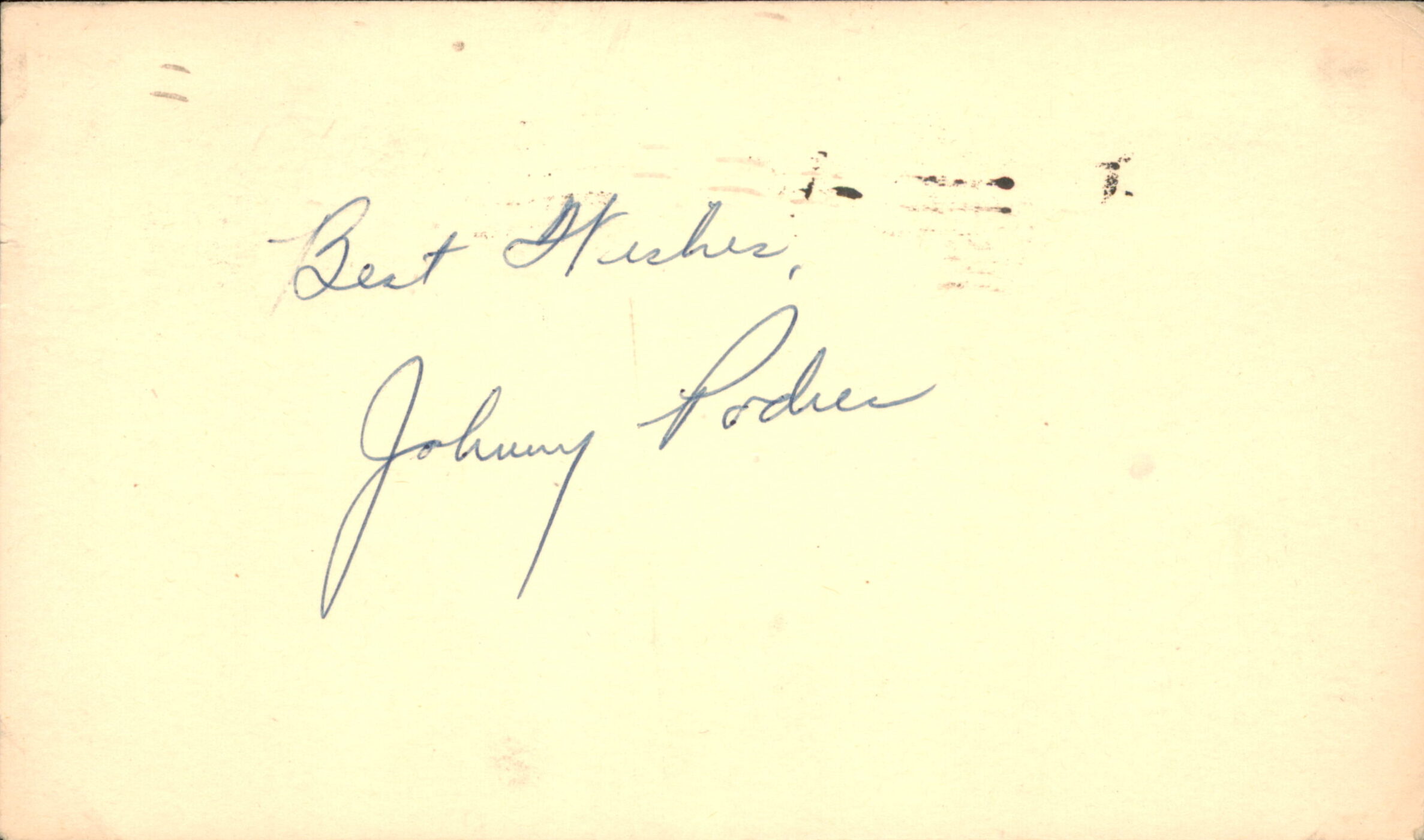 Notice the postmark on the back side of the Johnny Podres autograph. It’s from Brooklyn and dated July 18, 1953 – Podres’ rookie season. Two months shy of his 21st birthday when he signed this, the southpaw wasn’t even old enough to drink.
